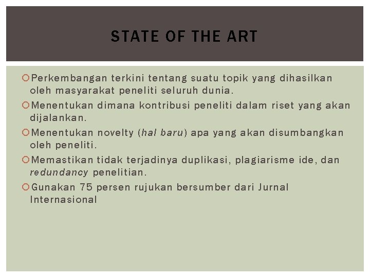State of the art , novelty(kebaruan) penelitian, sitasi , road map. Dalam penulisan karya ilmiah, sebuah pembaruan merupakan bagian penting. Merujuk pada sukardi 1 novelty atau kebaruan dalam penelitian dapat dibedakan menjadi . Penelitian dalam bidang agroindustri di departemen. Analisis kebaruan (novelty) dalam metode penelitian akuntansi oleh :