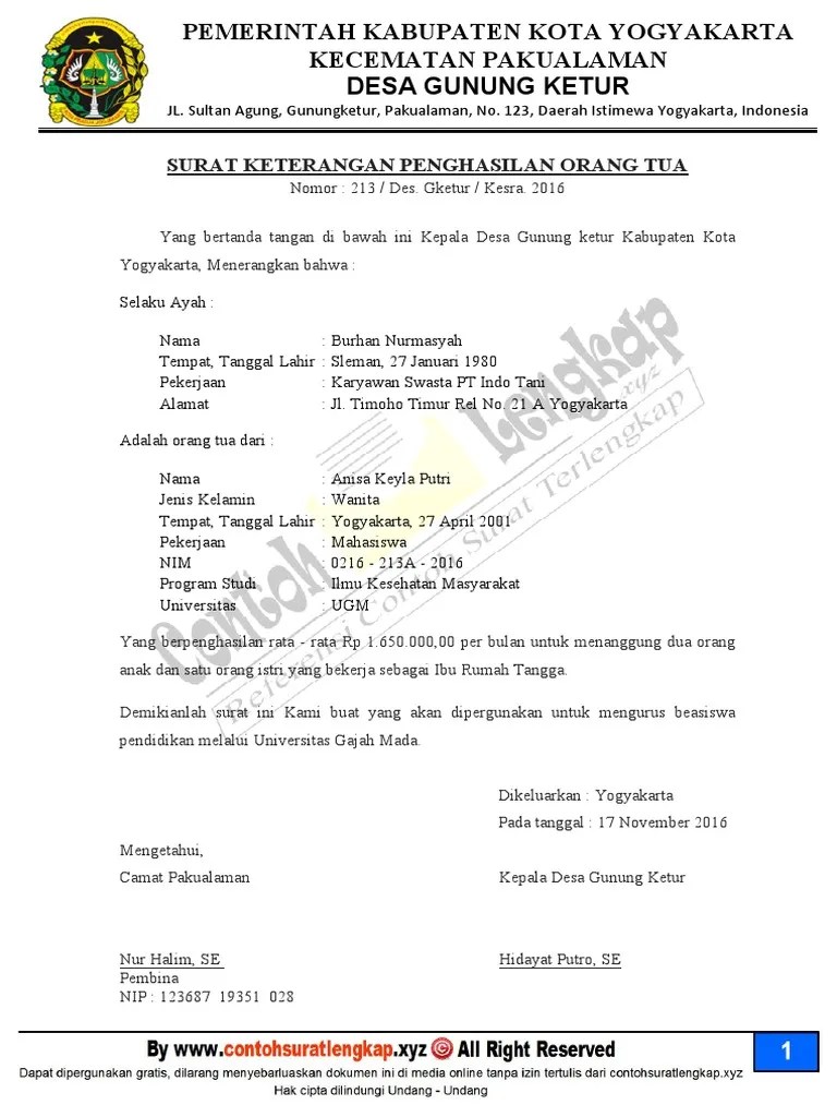 Bagi orang tua yang bekerja menjadi pns baik itu di pemerintah daerah, pemerintah pusat . Surat pernyataan penghasilan orang tua. Surat pernyataan penghasilan orang tua. Namun lain cerita jika kebetulan tidak bekerja di instansi, . Kop surat kelurahan / kepala desa.